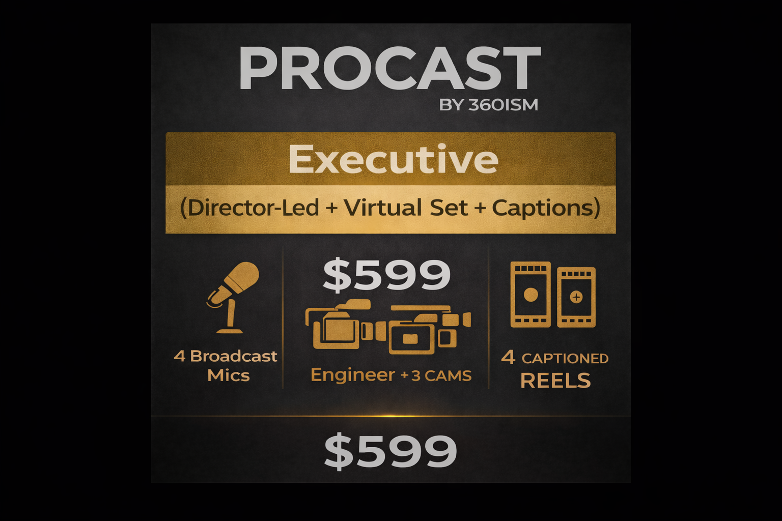 This is your full “production partner” session: guided flow, branded visuals, and publish-ready assets that reduce your internal workload.