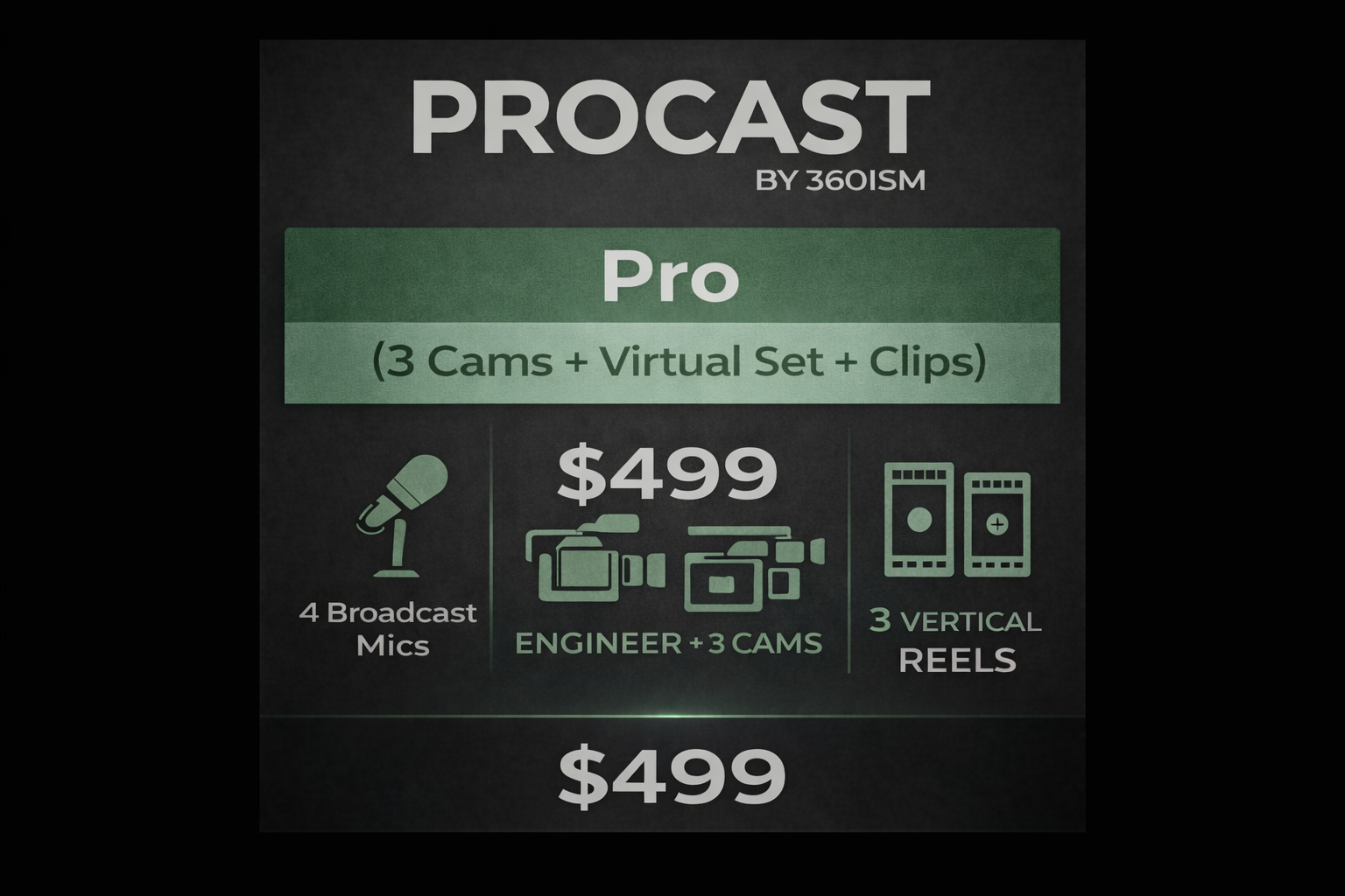 You don’t just record—you leave with branded assets designed for growth: a polished master plus vertical clips ready to publish.